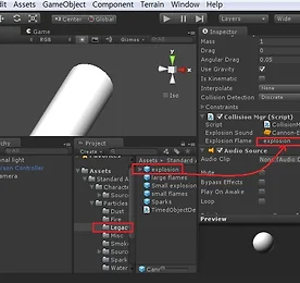 Unity3D/Particles 썸네일형 리스트형 Unity 3D Particle 유니티 3D에서 파티클을 사용하여 포탄이 목표물에 명중한 후 폭발하는 장면을 구현한 예 앞서 작성했던 포탄 발사 프로젝트를 다시 사용하여 포탄에 포함된 스크립트에 폭발 효과를 표현하기 위해 파티클 인스턴스를 동적으로 생성한다파티클도 유니티에서는 GameObject 에 속하므로 public 변수로 선언한 후에 Inspector 뷰에서 드래그하여 할당하면 된다 CannonBall 프리팹에 다음과 같은 스크립트를 포함한다#pragma strict var explosionSound:AudioClip;var explosionFlame :GameObject; function Start () {} function Update () {} function OnCollisionEnter(collision:Collision.. 더보기 이전 1 다음
