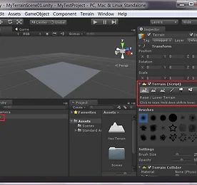 Unity3D 썸네일형 리스트형 Unity 3D Terrain Paint Top 유니티 3D에서 지형의 높낮이를 브러시로 표현하여 산의 모양으로 구현하는 예 1. 유니티에서 Terrain > Create Terrain 으로 기본지형을 생성한다2. Terrain > Set Resolution... 으로 지형의 크기 등을 설정한다3. Terrain > Flatten Heightmap... 으로 지형의 최대 깊이를 설정한다 4. 지형을 그리기 위한 브러시의 기능위의 내용을 거쳤다면 이제부터 브러시를 이용하여 지형의 높낮이를 표현할 순서이다. Hierarchy뷰에서 지형을 선택하면 Inspector뷰에 지형을 표현하기 위한툴바가 보이는데 툴을 누를 때마다 해당 툴에 대한 설명이 보여진다. 다음은 지형을 표현할 때 사용하는 3가지 툴의 자체 설명이다. 위 그림의 첫번째 툴을 선택하고 지형을 .. 더보기 이전 1 ··· 68 69 70 71 72 73 74 ··· 78 다음